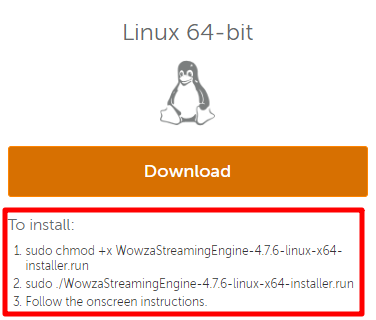 1 | sudo chmod +x WowzaStreamingEngine-4.7.6-linux-x64-installer.run |