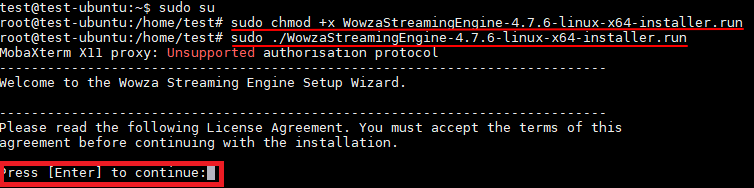1 | sudo ./WowzaStreamingEngine-4.7.6-linux-x64-installer.run |